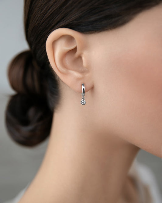 Huggies-earring with a hanging cubic zirconia