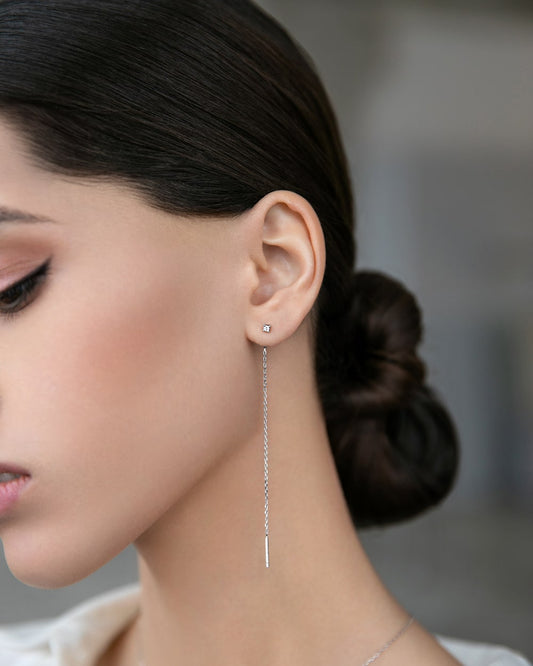 Classic single-stone studs and futuristic cube earrings. Delicate broaches till the collarbones and jackets framing the lobe. Earrings for the most neat everyday looks and the most beautiful evening outings.