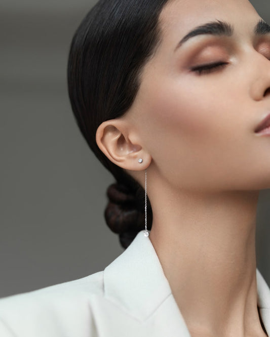 Stud earrings with pendant cubic zirconia