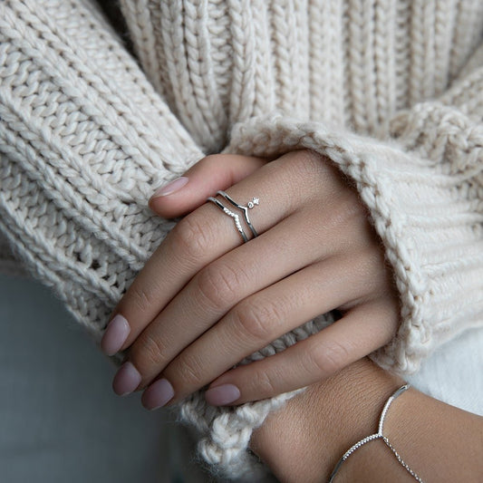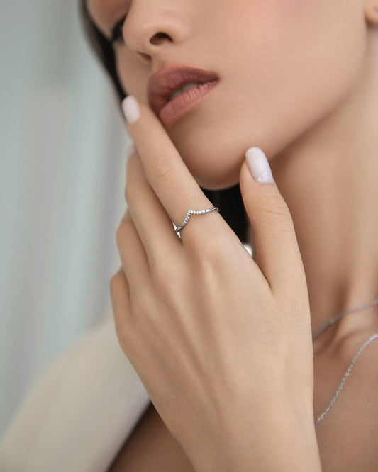 Double V Ring with Cubic Zirconia Pendant