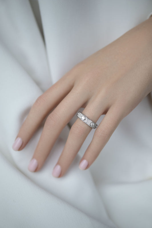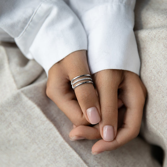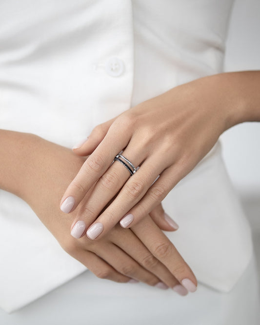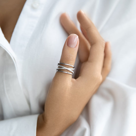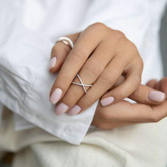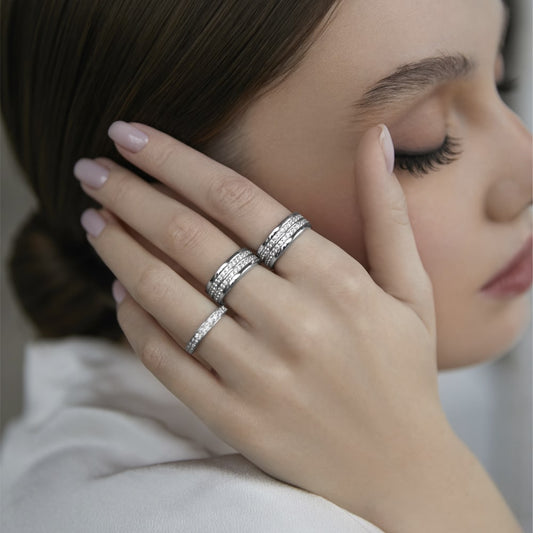 Sparkling full cut cubic zirconia and mirror-polished noble metal are available in models for the base of the finger and its upper phalanx