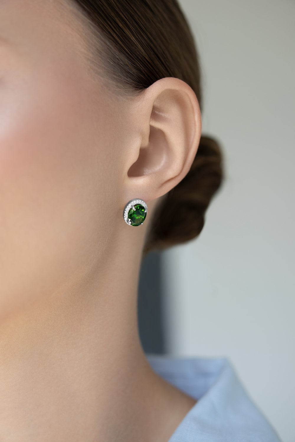 Made of 925 sterling silver, decorated with the highest quality green cubic zirconia. Does not contain nickel and lead. Covered with a precious metal of the platinum group - rhodium (rh), which prevents the product from darkening.