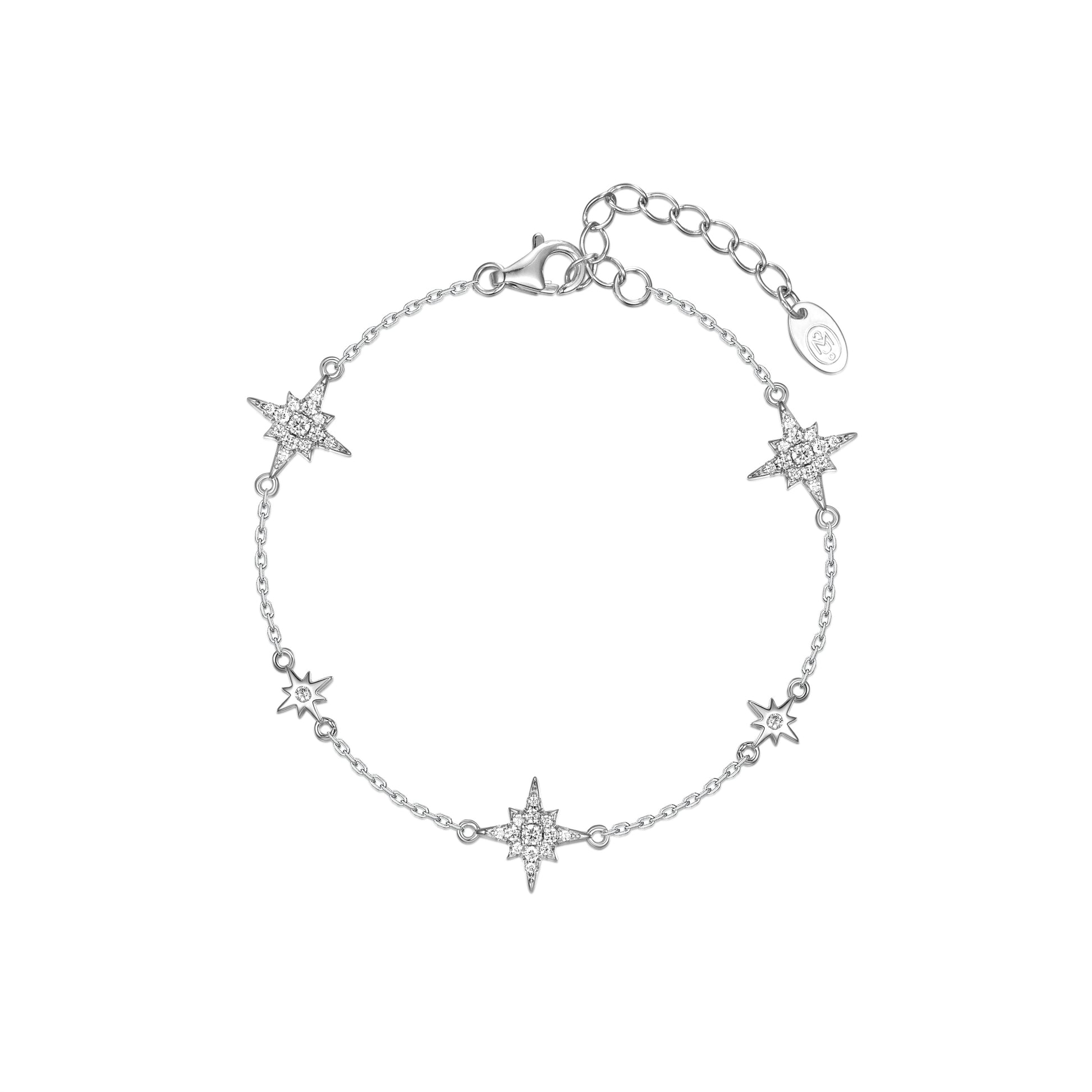 A charm bracelet featuring Stars of various textures along the entire chain—magic wrapped around a woman's wrist. We took the form of the North Star and used it to adorn this piece. The North Star remains virtually motionless in the sky; for centuries, it has been used to find the way. It serves as a symbol of guidance even in the darkest of times. And, of course, it is simply beautiful.