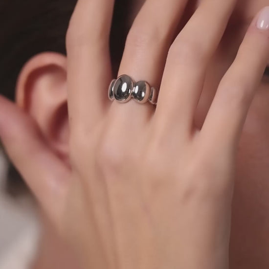 | An exceptionally stylish ring that commands attention instantly: It's highly visible — thanks to its substantial form and expressive silhouette. It's a statement ring — wearing this single piece is enough to complete your look — no need to overload your fingers. It's perfect for the autumn-winter season, complementing voluminous and textured clothing perfectly. The ring's lines are soft, yet the absence of stones makes it not coquettish, but fundamental and confident — much like the woman who wears it. The ring is part of an equally stylish set, featuring hoop earrings in the same design. |