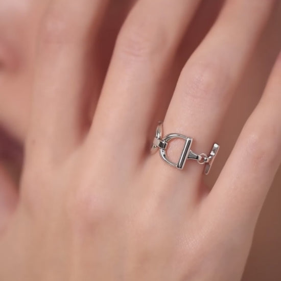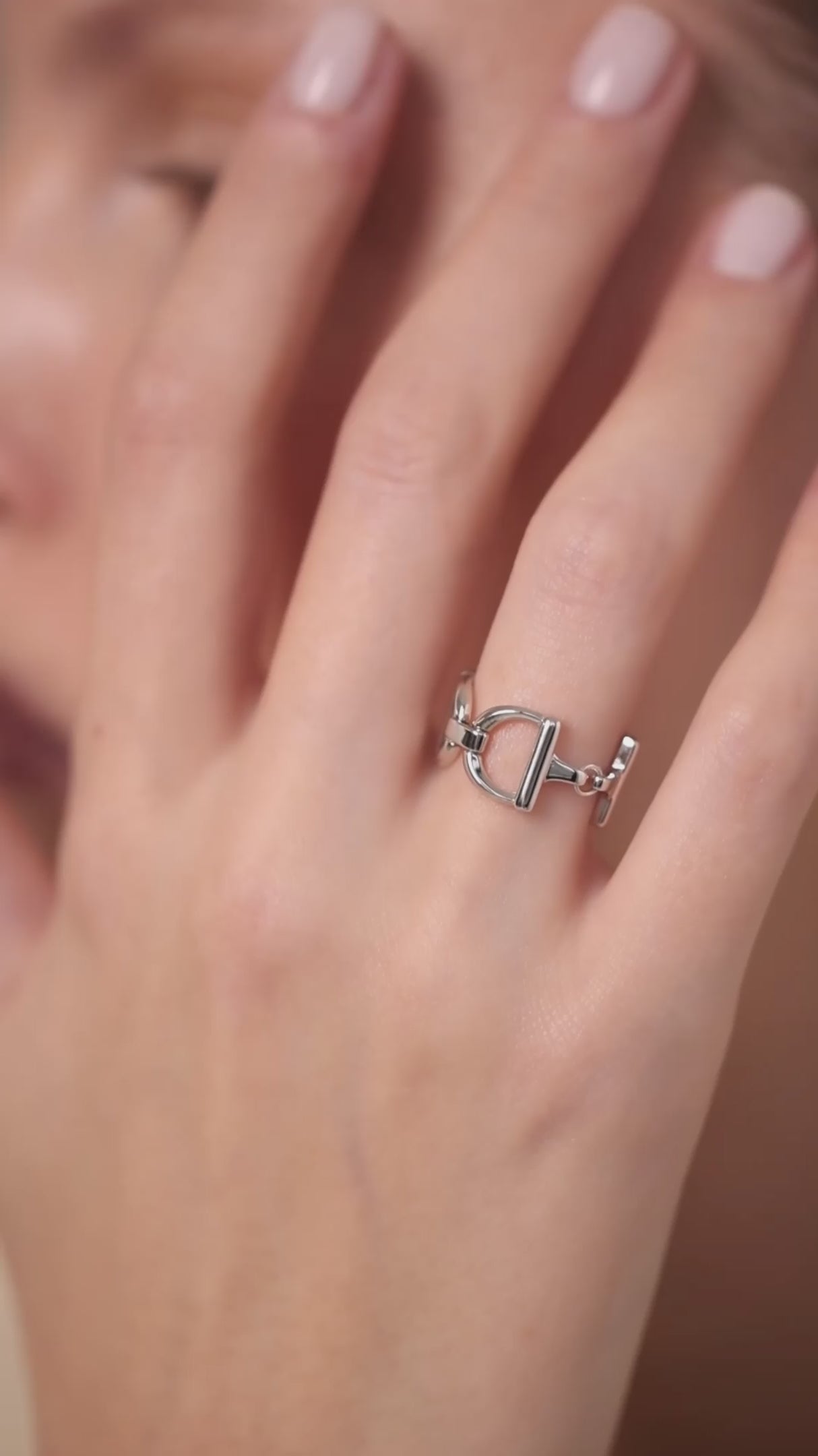| The Étrier Ring (French for "Stirrup") is not just a symbol for equestrians and horse lovers. This ring draws inspiration from the shape of the stirrup—the component where the art of horseback riding begins. The stirrup is a key part of a rider's equipment: the foot rests in it to maintain balance in the saddle, shift body position, and guide the movement. The collection is also inspired in part by the global brand Hermès. Equestrian sport is at the very heart of its unique DNA. The brand's roots are a symbol of craftsmanship—Hermès began by creating harnesses and saddles for the European nobility. In those days, horses embodied status and luxury. To this day, leading fashion houses continue to incorporate equestrian motifs into their collections. Beyond equestrianism, the stirrup has become a symbol of balance, support, and confidence in moving forward—as if one is in control of their own direction, much like a rider guiding their horse. The ring features movable elements and is crafted from 925 sterling silver. |